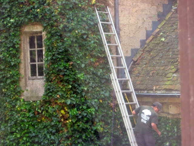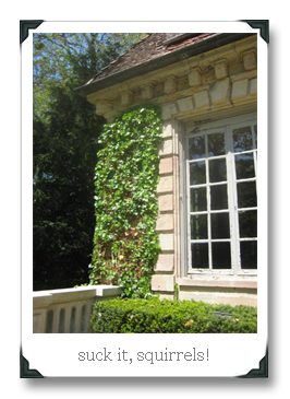 On Saturday, October 3rd, we had a major squirrel-extermination project going. I’d finally picked a guy who seemed like he knew what he was doing, and who seemed to appreciate the full scope of the job (since he actually pulled his behind up into the attic, and out onto the windowsills, too). The job was all day—he and an assistant closed up all the holes around the gutters and windowsills with metal sheeting and/or mesh.